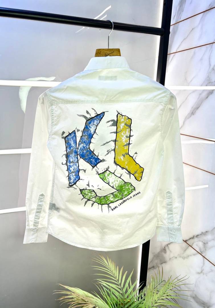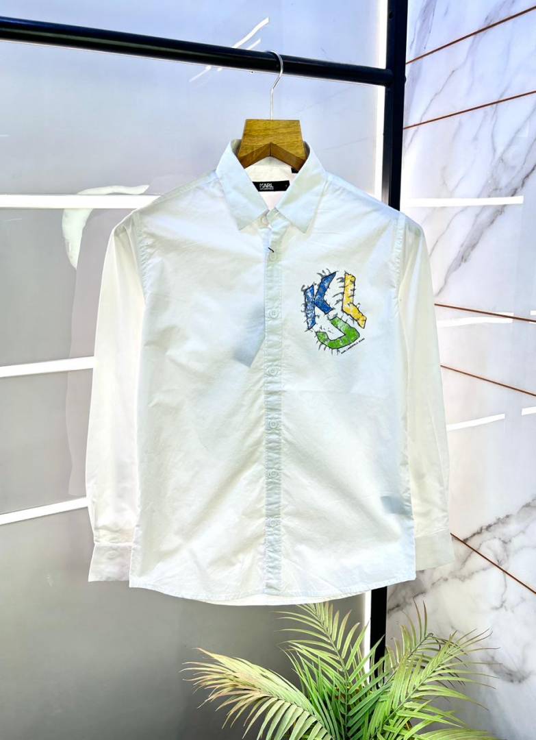 Karl Lagerfeld Imported Back Printed Oxford Lycra Premium White Shirt With Brand Packing F3103-W4